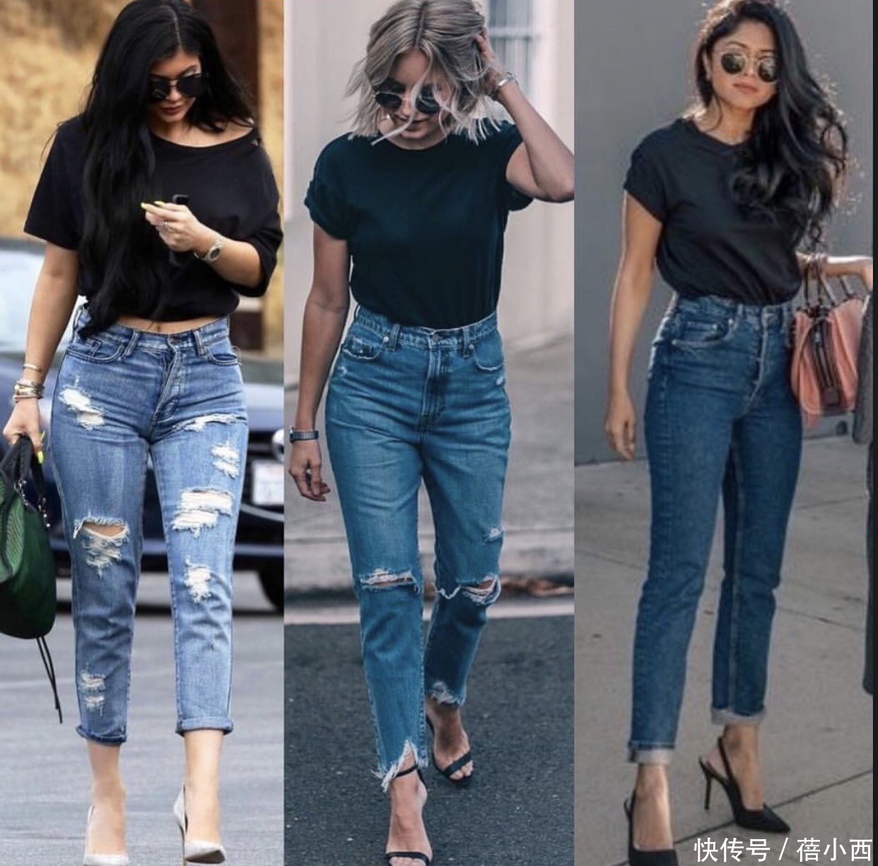 玄色T恤+牛仔裤,即从简有先锋,这件穿搭就尽头的正常了,第一套一稔玄色漏装脐加上一件破洞九分牛仔裤,你即是先锋界的骄子。