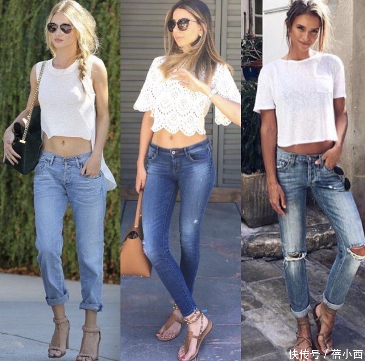 白色露脐上衣和一件金莲牛仔裤,穿起来满满的芳华活力,夏天莫得一件露脐装即是对夏天的不尊重。
