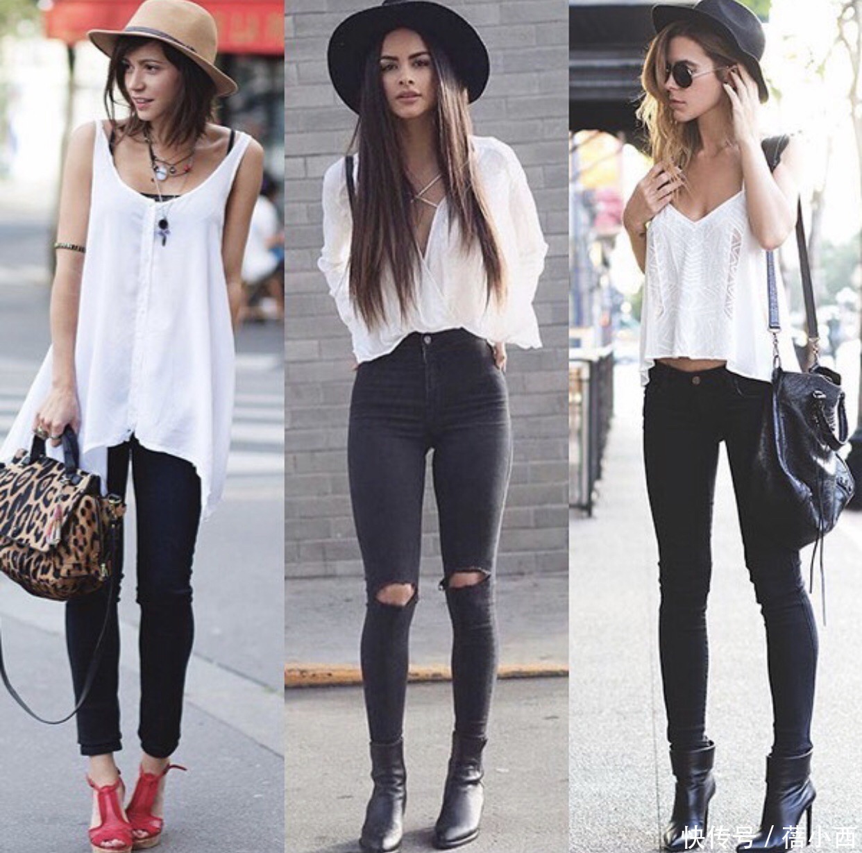 宽松的白色无袖上衣+玄色的紧身金莲裤,我悄悄的告诉你一个搭配小妙招银河娱乐网站,上身宽松下身就紧身。